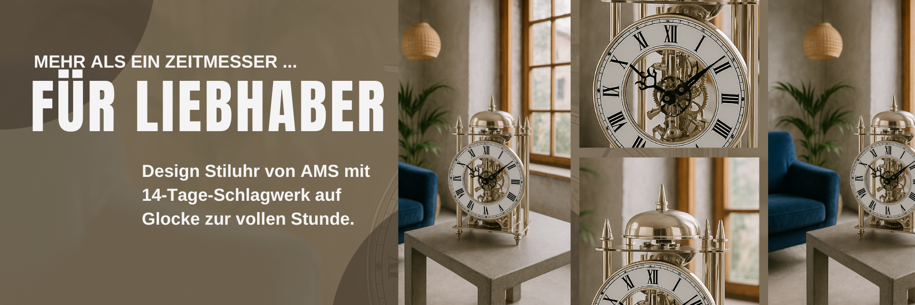 Natuhr Tischuhr Buche Holz - Knick - Massivholz Design - silberner Metall Zahlenreif