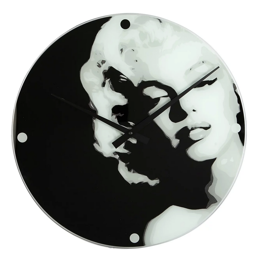Moderne Glaswanduhr von Nextime mit verspiegelten Elementen.